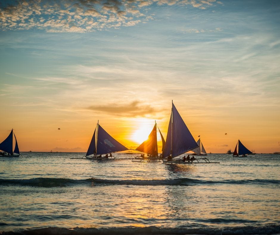 Boracay Paraw: sailing is iconic in Boracay: tourists enjoy sunset cruises or island-hopping rides aboard local paraws built of wood and bamboo.