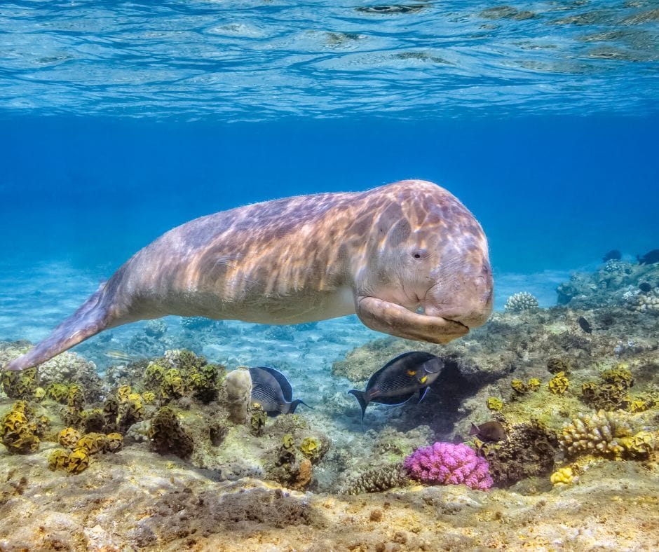 Seagrass beds, feeding grounds for dugongs, turtles, and many fish.